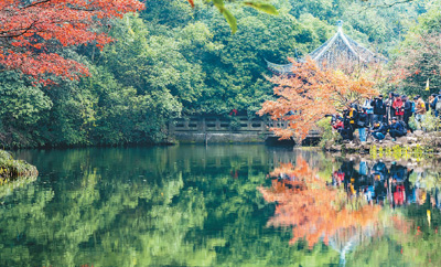 浙江省杭州九溪十八涧“枫”景如画,游人如织。 |