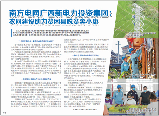 补齐广西新电力投资集团供电区域电网建设的短板,从“扶贫电”向“小康电”迈进,这是时代给广西电网公司和广西新电力投资集团出的一道考题。