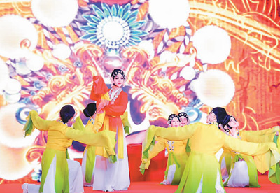 近日,浙江省淳安县屏门乡在千岛湖西园广场举行非遗睦剧文化旅游节展演活动。近年来,屏门乡以党建为引领,充分发挥当地非遗睦剧的传统文化优势,成立党员睦剧传承表演队,积极参与文化扶贫、文化扶智活动。图为表演队成员在舞台上表演节目。