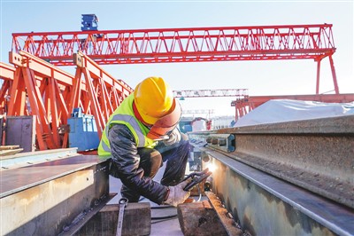 寒冬时节,京秦高速公路(遵秦段)河北省遵化市西下院寺立交互通桥梁工地上,工人们正紧张工作,确保如期竣工。京秦高速公路遵化至秦皇岛段预计2022年12月建成通车。图为中建六局轨道交通公司的工人在工地施工。 |