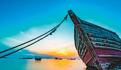 “我们从海上仙山来!”船老大波涛里翻滚了数十年,脾性如这大海般宽阔敞亮。船老大喜色满脸,他的话引起了船员和岸上众人的喧笑。我知道,他们今日出海定有极好的收获。