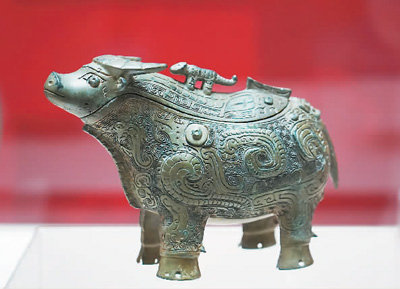 2月2日至3月7日,“卓荦迎新——中韩牛年生肖文物交流展”在上海博物馆举行。2021年适逢中国农历辛丑牛年,上海博物馆与韩国国立中央博物馆共同联手,为观众奉上跨越国界的牛年生肖文物交流展。图为上海博物馆藏商代晚期文物青铜器“凤纹牺觥”。