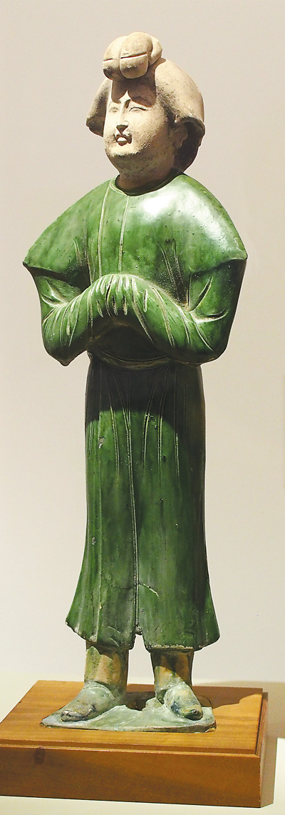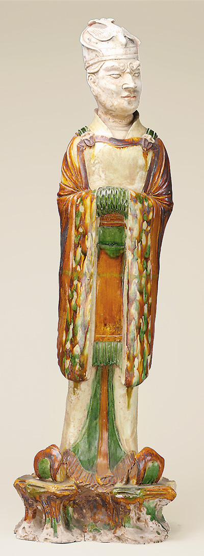 唐代戴鹖冠三彩俑 |