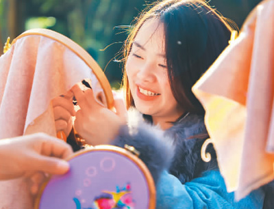 2021年1月12日,年轻人在湖南省湘西土家族苗族自治州吉首市青年文创基地体验苗绣技艺。 |
