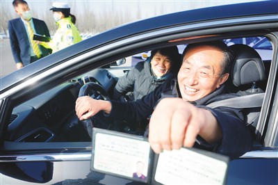 1月12日,72岁的聂振景在北京东方时尚驾驶学校顺利通过各科目考试,取得了驾驶证。这也是全国首位取得小汽车驾驶证的70岁+学员。为更好适应老龄化社会发展的新需求,2020年11月,公安部发布新措施——“放宽小型汽车驾驶证申请年龄,取消申请小型汽车、小型自动挡汽车、轻便摩托车驾驶证70周岁的年龄上限”,让70周岁以上老人也能圆“驾驶梦”。图为喜领驾照的聂振景和老伴准备驾车回家。 |