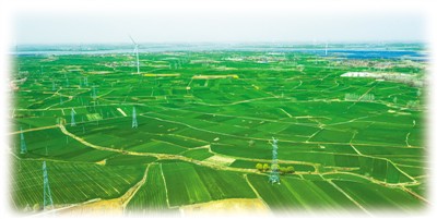 在江苏省宿迁市泗洪县天岗湖乡,成片的麦田像一块块绿色画板装扮着大地。水上光伏、岸上风电、纵横交错的电网,源源不断送出绿色电源。昔日闭塞贫困的江苏“西南岗”已成为绿色能源新高地。图为3月21日,无人机从空中拍摄的当地景色。 |