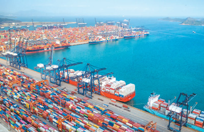 连日来,位于广东省深圳市的盐田港区一派繁忙。广东深圳海事局公开数据显示,2021年第一季度,深圳港盐田港区新增9条囯际航线,吞吐量一路飘红,完成集装箱吞吐量366.73万标箱,同比增长45.86%。图为数艘货轮在盐田港区囯际集装箱码头装载出口的货物。