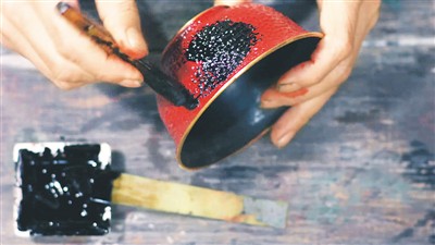 走进工作室二楼,一股浓重的生漆味扑面而来。“生漆很容易让人皮肤过敏,长漆疮是每个漆艺工作者都必须攻克的难关。”甘而可说。