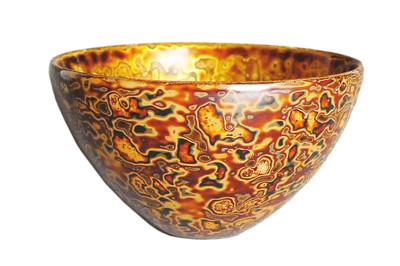 他拿起一根牙签,细数红金斑犀皮漆的纹路,数到第四十层,他停了下来,这是最耀眼的一层。“古代犀皮漆入漆的色料一般是银朱、石黄等矿物颜料,色泽凝厚,不透明。我尝试以黄金入漆,这是一种全新的做法,借助金属的折光性,使犀皮漆更加明艳。”