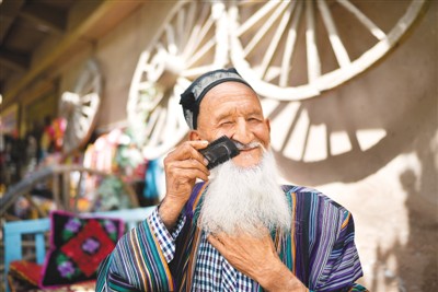 如今的新疆,各民族亲如一家,人民安居乐业。图为一位维吾尔族老人在惬意地享受午后时光。 |
