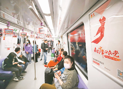 4月28日,“学党史 强信念 跟党走”庆祝建党100周年主题列车亮相南京地铁四号线,成为南京市党史教育移动基地。地铁车厢的拉手上展示了南京红色地标,车身上张贴了南京地方党史宣传海报,生动展现了建党百年的南京印记。 |