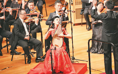琵琶演奏家赵聪(中)与乐队合作演出《记忆深处》 |