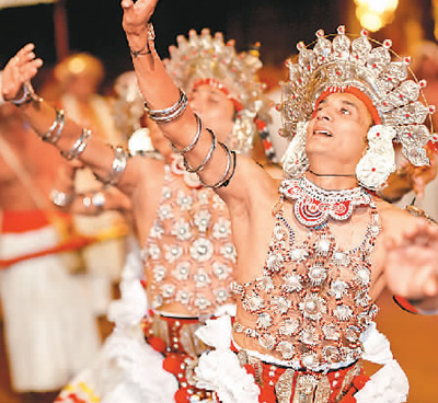 康提佛牙节游行中身着华丽服饰的舞者。 |