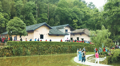 这张照片拍摄于毛泽东同志故居重新开放之际。许多参观者穿上“中国工农红军军服”前来参观。 |