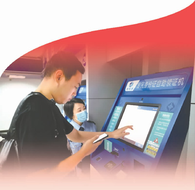 2020年10月27日,广州公安机关工作人员在帮助市民使用居民身份证自助领证机。 |