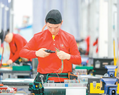 在去年于广州举办的中国第一届职业技能大赛上,选手们在参加电气技术竞赛。 |