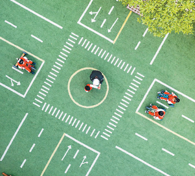 图为交警在辖区幼儿园指导孩子们学习交通指挥手势。