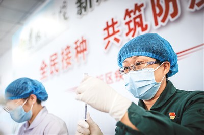 “五一”假期期间,辽宁省沈阳市沈北新区疫苗接种工作不放松,接种方舱持续接种。图为5月5日,医护人员准备为市民接种疫苗。 |