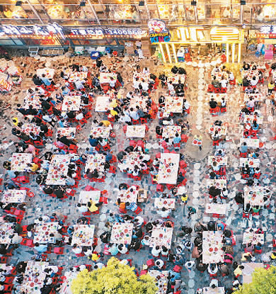 5月4日,湖北省襄阳市,沿江大道的不少餐饮店人气极旺。 |