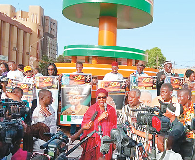泛非电影节举办期间,来自非洲各国的电影人走在布基纳法索首都瓦加杜古街头参加活动。 |