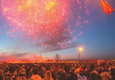 人们在俄罗斯圣彼得堡观看烟花。 莫京娜摄(新华社发)