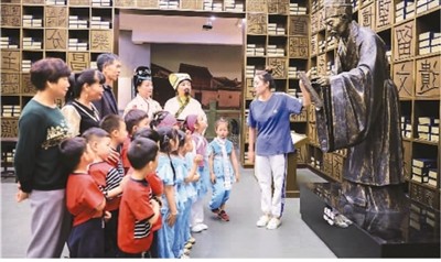 浙江省长兴县夹浦镇中心幼儿园近日开展“走近元曲 传承非遗文化”活动,通过参观明代戏曲家臧懋循纪念馆、观看戏曲《臧懋循》片段、跟非遗传承人学唱元曲等,让孩子们体验和传承传统戏曲文化、感受非遗文化的魅力。臧懋循是明代戏曲理论家,以编著《元曲选》而闻名。图为师生在臧懋循纪念馆内参观。