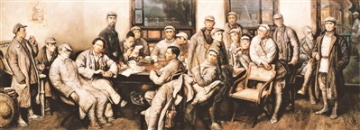 以美术作品表现会议场景历来是画家创作的难点。以正常的透视关系来表现围坐的参会者,必定会出现部分人物的背影。最终,20位参会代表在油画《遵义会议》中以一种散落有致的构图呈现,人物形象动态自然且符合个性特征。