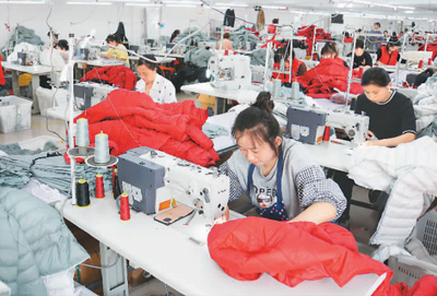 近年来,山东省东阿县积极探索实施多村一社区、规模农场以及就业工场的“一区两场”建设模式,发展规模农业,吸纳劳动力就业,实现了“农业、产业、就业”深度融合,有力推进了乡村振兴。图为在东阿县牛角店镇暖频道服饰加工车间内,工人正在使用智能缝纫机缝制面料。