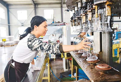 山西省祁县是我国著名的玻璃器皿生产和出口基地。如今,祁县玻璃器皿已经形成产品种类齐全、技术水平领先、产业链条完整、发展潜力巨大的产业集群。在祁县玻璃器皿80多个出口国中,“一带一路”沿线国家占到了近一半。图为山西宏艺玻璃器皿有限责任公司的工人正在制作玻璃器皿。