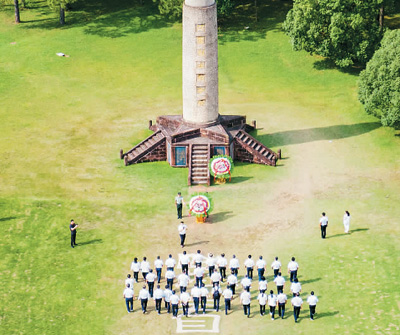 日前,人们在江西省瑞金市叶坪革命旧址群红军烈士纪念塔前缅怀先烈。
