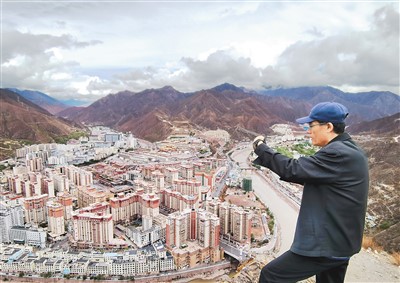 2021年5月11日,李纯民在西藏昌都拍摄城市新貌。 |