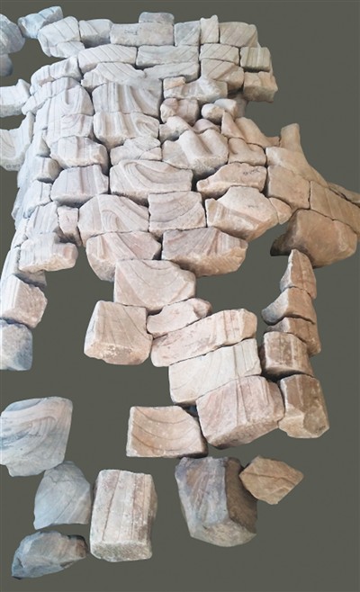 研究者依据考古发掘出的残片,对第20窟西壁立佛碎块拼对组合初形。 |