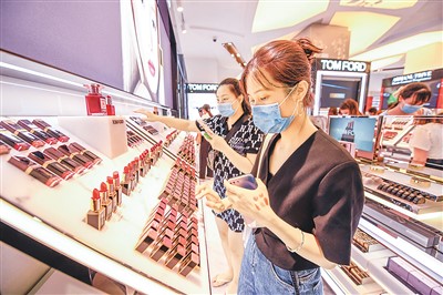 工资增长拉动了居民消费。海南海口日月广场免税店内,种类多样的免税品吸引众多离岛游客前来购物。 |