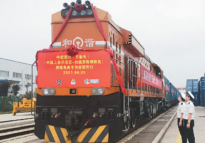 中欧班列(齐鲁号)上合示范区至白俄罗斯明斯克跨境电商专列首班开行。 |