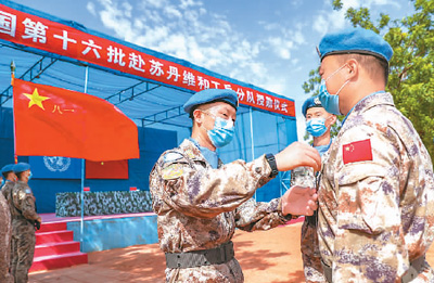 五月二十日,中国第十六批赴苏丹达尔富尔维和工兵分队官兵被授予联合国“和平荣誉勋章”。 |