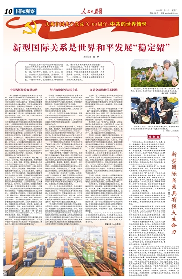新型国际关系是世界和平发展“稳定锚”(庆祝中国共产党成立100周年·中共的世界情怀)