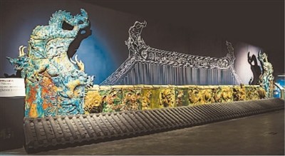 永乐宫有4座气势恢宏的殿宇,堪称元代宫殿式建筑的典范。此次展览中,一套三清殿屋檐顶端的琉璃构件尽显永乐宫建筑的壮美。