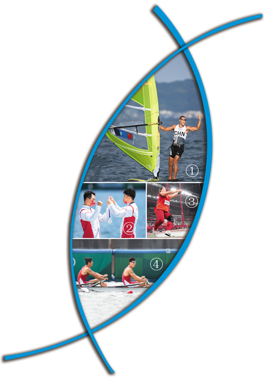 图①:7月31日,在东京奥运会男子帆板RS∶X级奖牌赛中,中国选手毕焜获得铜牌。图为毕焜在比赛中。