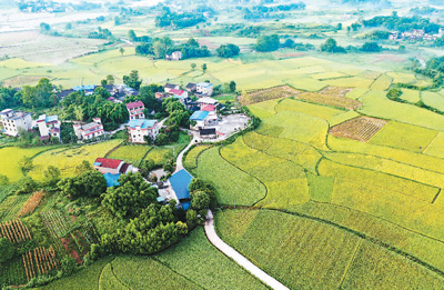 初秋时节,四川省广安市在全市种植的近200万亩优质水稻相继成熟即将进入收割期。图为广安市岳池县临溪镇龙摊子村,翻着金浪的水稻,在晨曦和薄雾的映衬下,把乡村点缀得美丽如画。