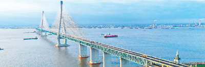 2020年7月1日通车的沪苏通长江大桥,是世界首座主跨超千米的公铁两用斜拉桥。 |