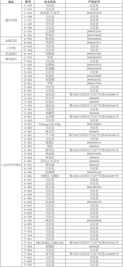 广东省深圳市罗湖区口岸经济带建设新秀片区城市更新项目(简称“新秀片区更新项目”)正在开展城市更新意愿征集工作。现罗湖区口岸经济带建设新秀片区指挥部(下称“指挥部”)暂未与项目范围内下列更新意愿被征集人(详见下方名单)取得联系。为充分保障下列更新意愿被征集人的知情权及其城市更新意愿表达,特公告未取得联系业主名单如下,请名单上的更新意愿被征集人在看到此公告后及时与指挥部联系并表达城市更新意愿。