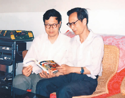张钹(右)与张铃讨论人工智能学术问题。(1992年) |