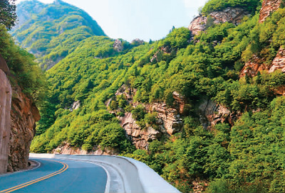 出了悟真寺转过第一弯,一条小河即向山道靠拢而来。由此开始,小河和山道一路相伴,直到玉山蓝河风景区。流水撞在大大小小的石头上,河谷里溅起洁白的水花。如果说这个时候给人的感觉还只是水碧山青,那么过了悟真寺2号隧道,拔地而起的两山夹路的景色,则让人瞬间心绪升腾,忍不住叫出一声:壮美!