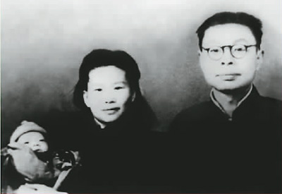 李侠的原型李白(右一)全家于1946年1月19日在上海合影。当时他的孩子只有35天。 |