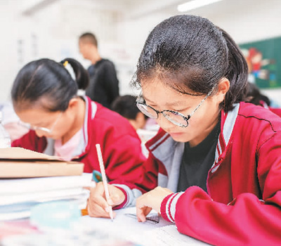 宁海民族中学海安4班的学生在教室里上课。 |