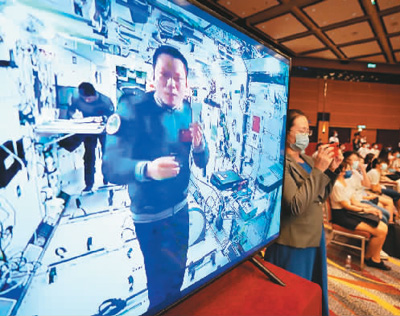 9月3日,正在天宫空间站执行任务的神舟十二号乘组与香港科技工作者、教师和大中学生进行天地连线互动。 |