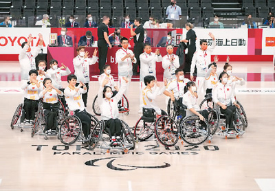 中国女子轮椅篮球队向观众致意。 |