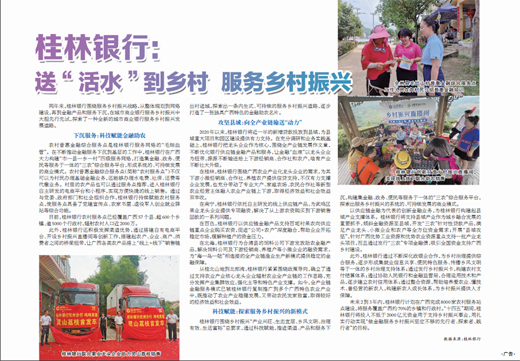 两年来,桂林银行围绕服务乡村振兴战略,从整体规划到网络建设,再到金融产品和服务下沉,在城市商业银行服务乡村振兴中大胆先行先试,探索了一种全新的城市商业银行服务乡村振兴发展道路。