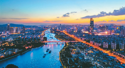 太阳高照,橘色光晕染红了半边天。运河沿岸高楼叠起,繁花似锦,古城、古庙、古桥、古塔、古园林在愈渐浓郁的现代氛围中,保留着古色古香、浓淡总相宜的氤氲之气,江南风韵,又像是苏州人爱听的评弹,温婉、抒情,含着韧性。