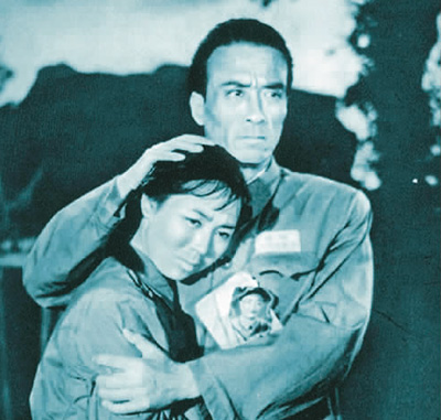 《英雄儿女》剧照:王芳和生父王文清相认 |